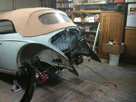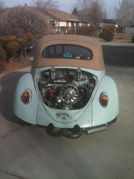 Mr. Bergmann, here is a pic of my 64 vert using your 911 style cooling system which works very well on my 2276. The one thing I am having a problem with is the CB hexbar linkage. I can't keep the Webers in sync. I have been impressed with your Spherical bearing supported Linkage and feel it will solve the problem, looking forward to working with you again, thank you.