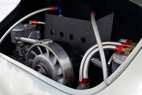 Bernie, the engine looked fantastic in the 356, it was a focal point of the car, paired to a custom stainless exhaust it sounded like no other 356. The power of the engine was fantastic, matched to a rebuilt 4 speed box it supplied great acceleration and sat nicely at a cruising speed on long trips. The car was cooled by the Bergman fan and in addition we added the side window air intakes - they were not a requirement to cool the engine, they were more for visual appearance and the car never ran to hot - it just worked. It has been photographed for magazines world wide and the entire package including the beautifully finished engine bay was always a requested shot. Thanks for building me such a nice engine, I look forward to using another one of your creations on the next project.