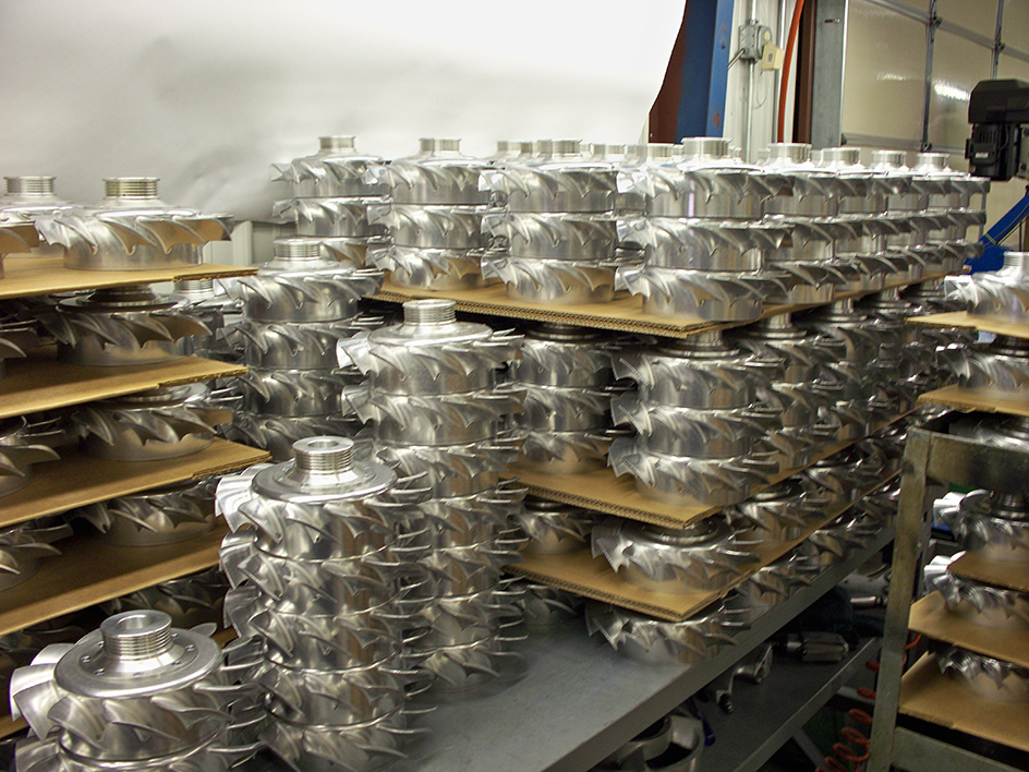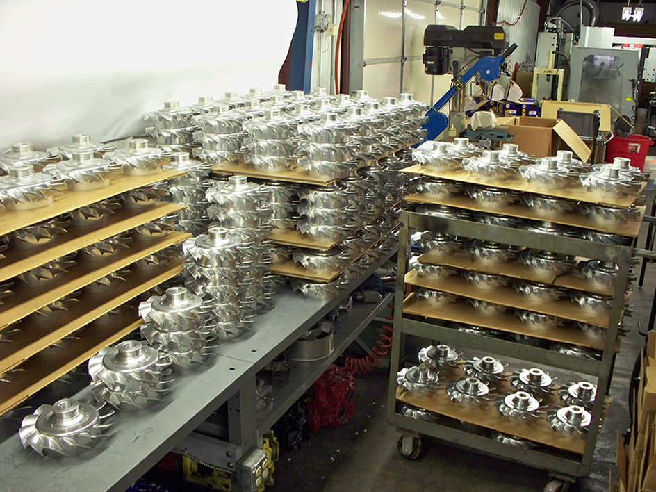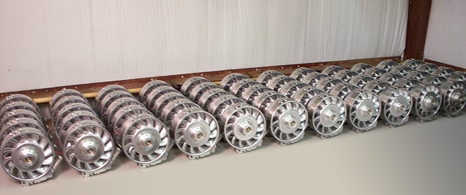 Now here is a sight you don't see very often, 330 Fans, ceramic coated, polished to a lustrous finish, serpentine fan belt pulley installed-Ready for Balancing |